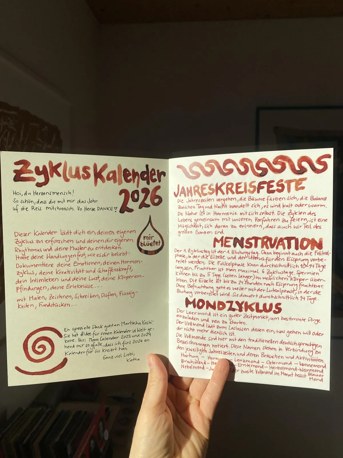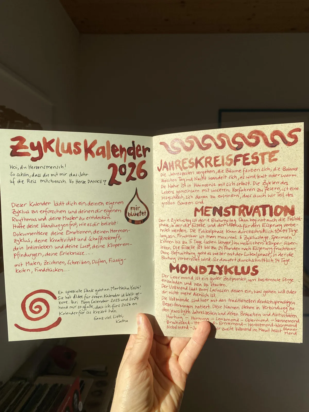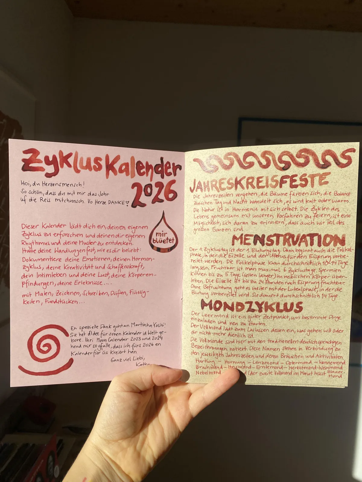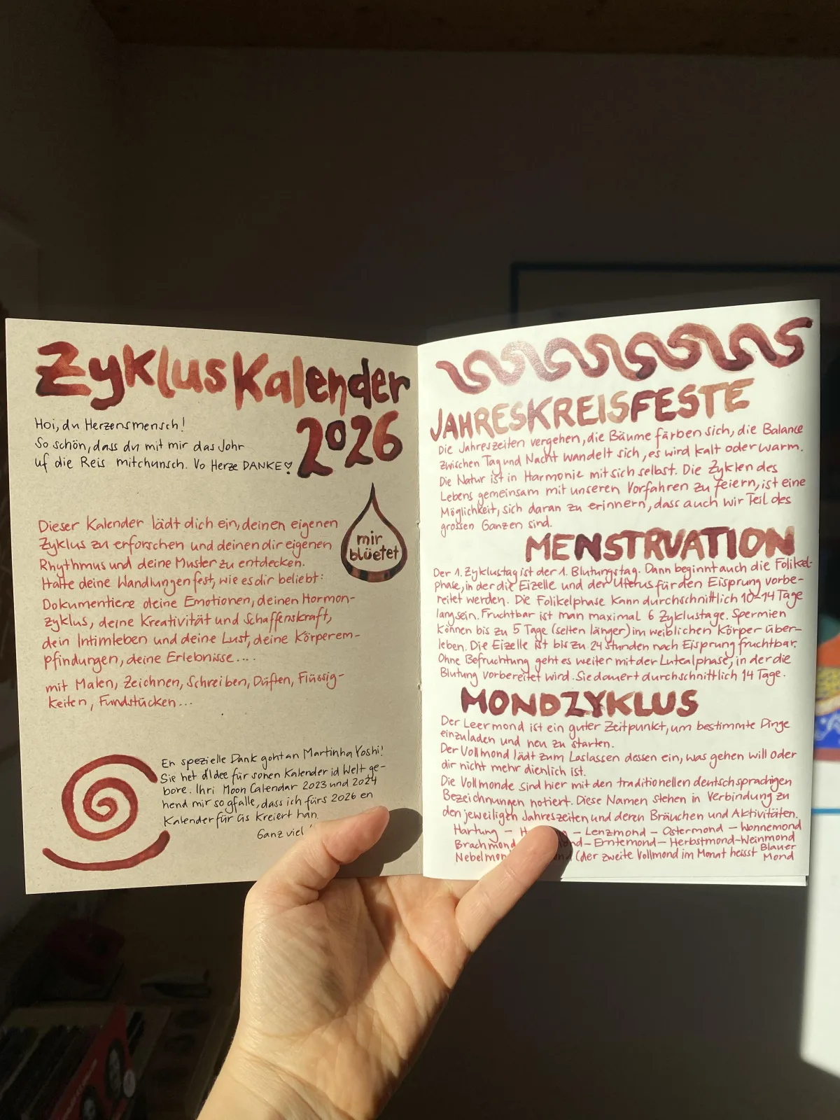 Der Zykluskalender hilft dir, deine eigenen Muster und persönlichen Rhythmen zu erforschen und rauszufinden, wie sie sich mit den Zyklen und Jahreszeiten der Natur zusammenspielen.