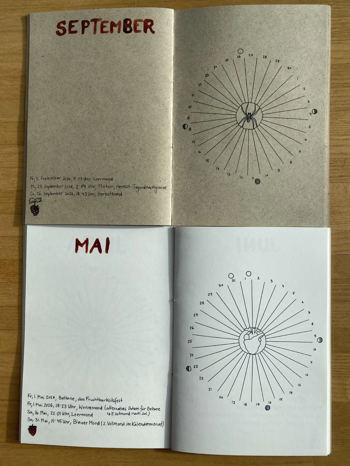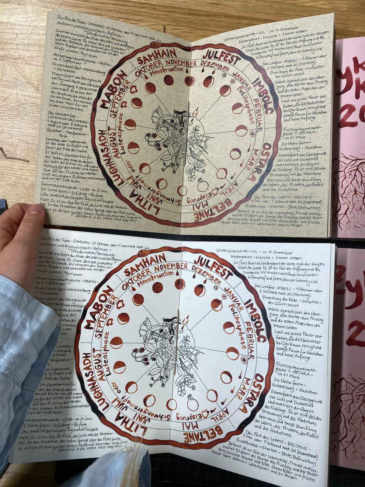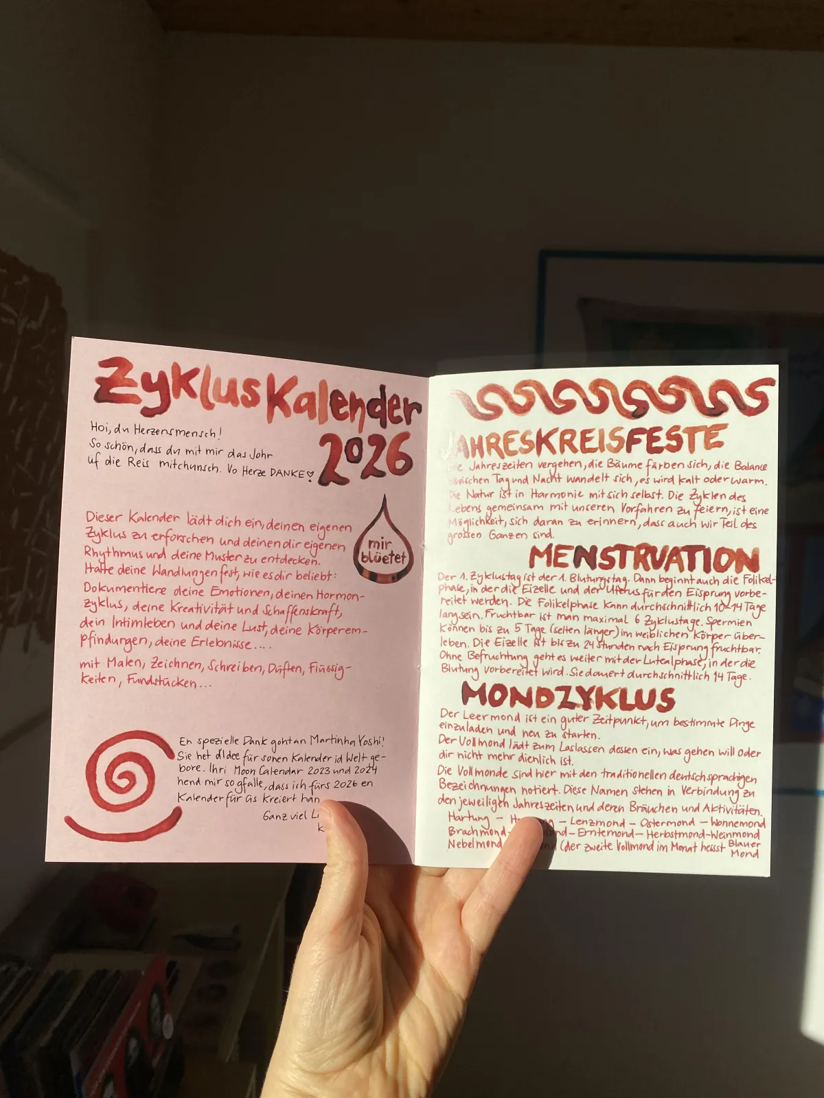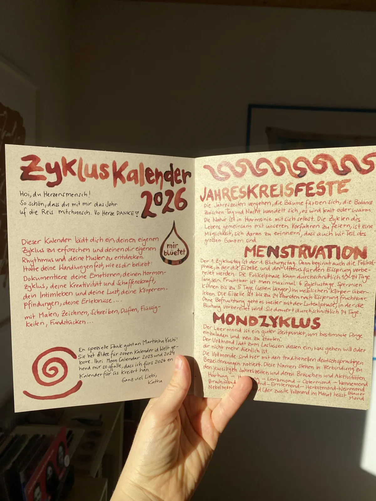 Der Zykluskalender hilft dir, deine eigenen Muster und persönlichen Rhythmen zu erforschen und rauszufinden, wie sie sich mit den Zyklen und Jahreszeiten der Natur zusammenspielen.